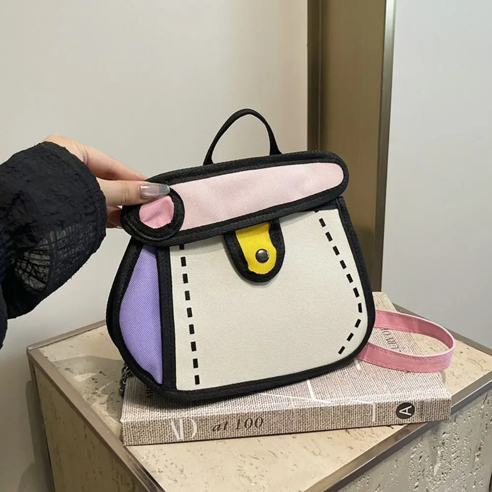 Personality Cartoon Comic Crossbody Bag Canvas Handbag Chain Shoulder Bag Coin Purse Small Line Painting Messenger Bag Travel