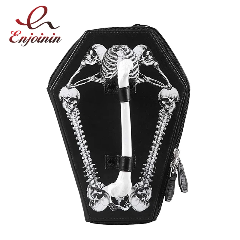 Fashion Black Pu Leather Shoulder Bag with Skull Coffin Casket Shaped Clutch with Chain Strap Gothic Purse for Women Handbag