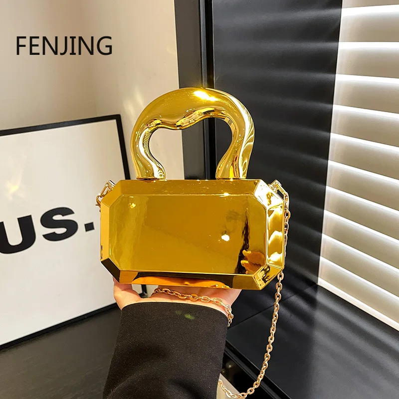 Gold Silvery Acrylic Box Bags Clutch Evening Bag Elegant Chain Shoulder Bag for Women 2025 Handbag Prom for Wedding/dating/party