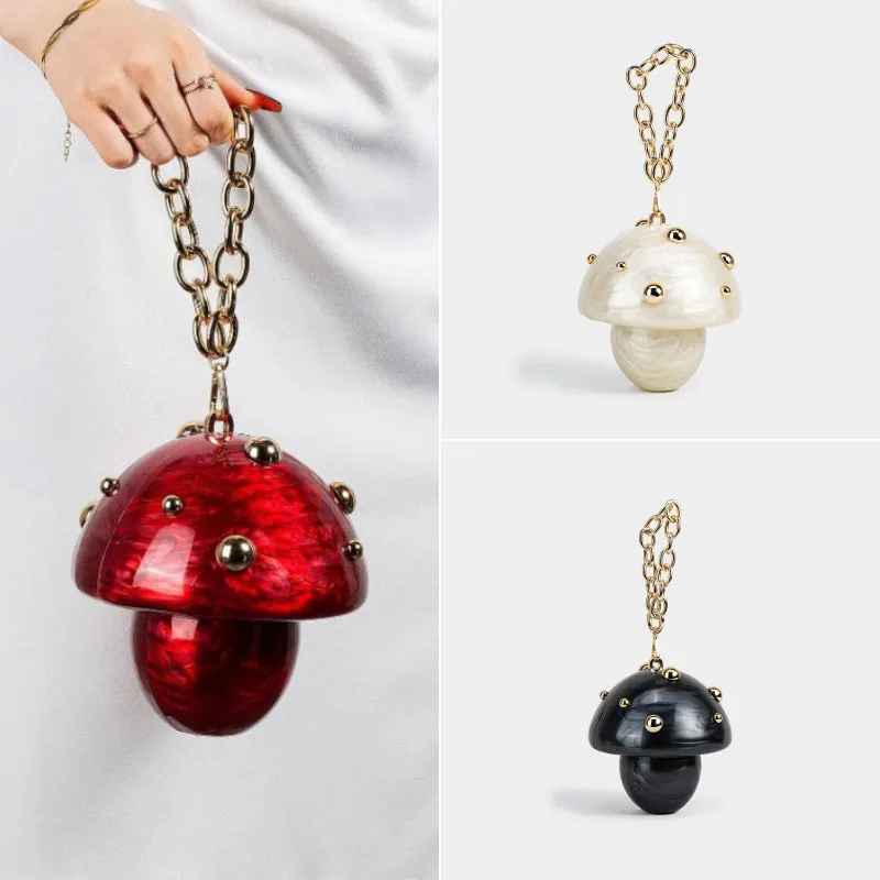 Acrylic Handbag, Mushroom Shaped Metal Studded Evening Bag Wedding Elegant Clutch Purse, Women Chain Crossbody Makeup Storage Bag