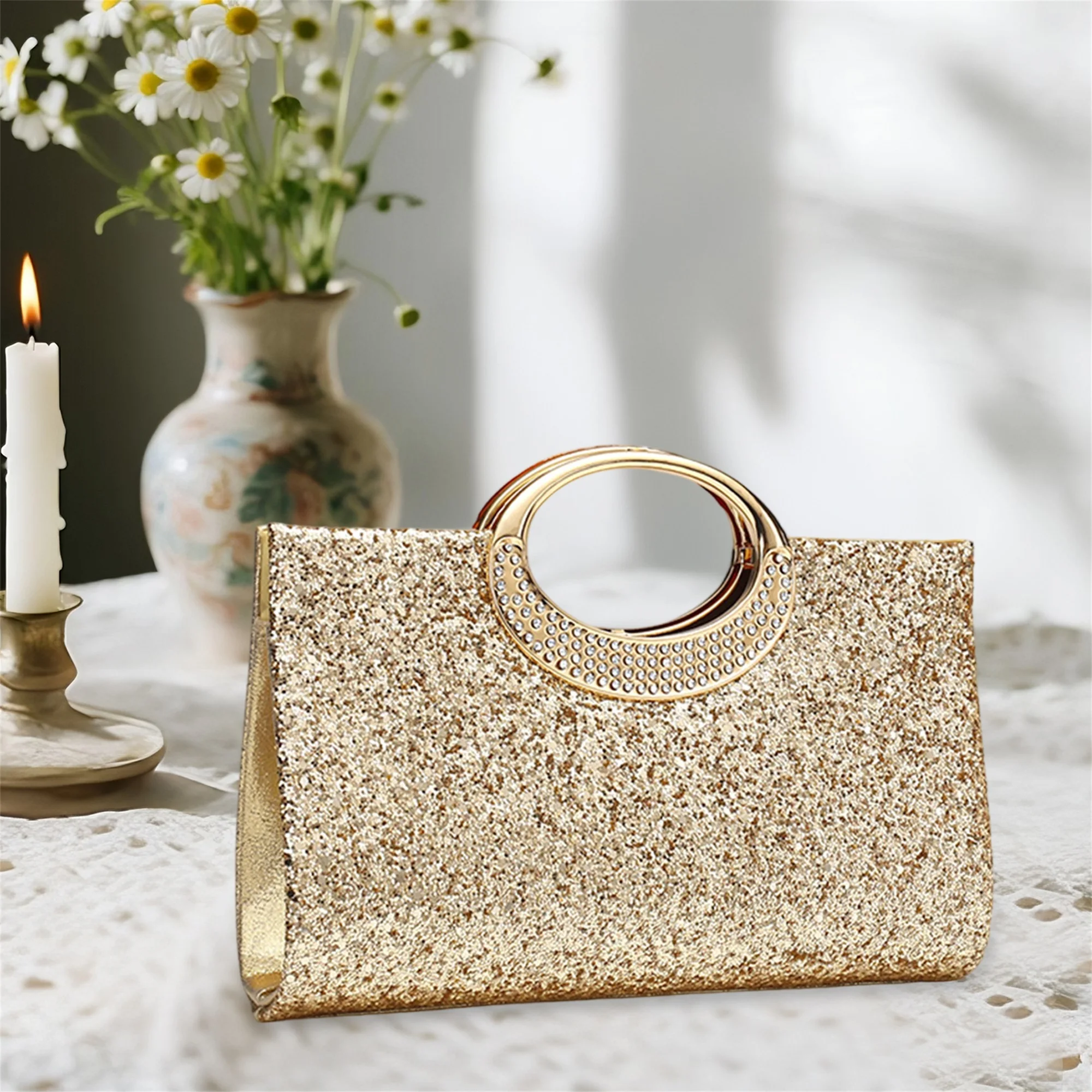 Elegant Rhinestone Embellished Clutch Purse with Detachable Chain Strap for Women s Evening Party Outfits