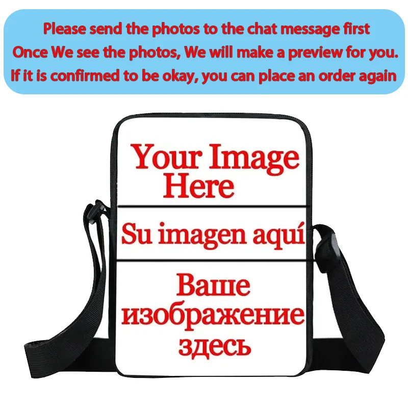 Custom Your Image Name Logo Messenger Bag Women Handbag Girls Crossbody Bag for Travel Ladies Clutch Shoulder Bags Bookbags Gift