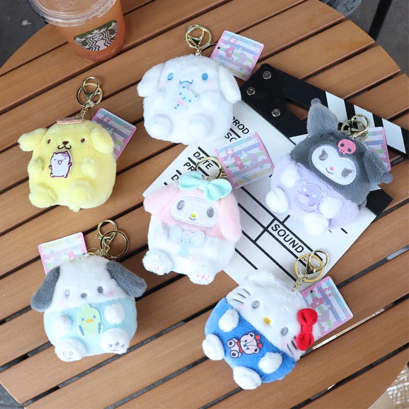 Cartoon Cute Sanrio Melody Plush Purse Keychain Hello Kitty Coin Purse Cinnamoroll Plush Pendant Soft Stuffed Plush Toy for Girl