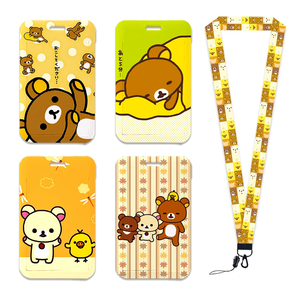 Kawaii Bear Cute Kuma Design Cartoon Lanyard For Keys Chain ID Credit Card Cover Bus Card Holder Charm Badge Holder Accessories