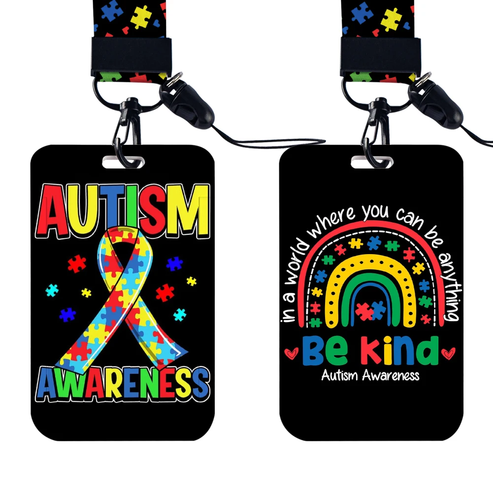 Autism Awareness Lanyard For Keys Chain ID Credit Card Cover Bus Card Holder Charm School Badge Holder Personalized Badge Card