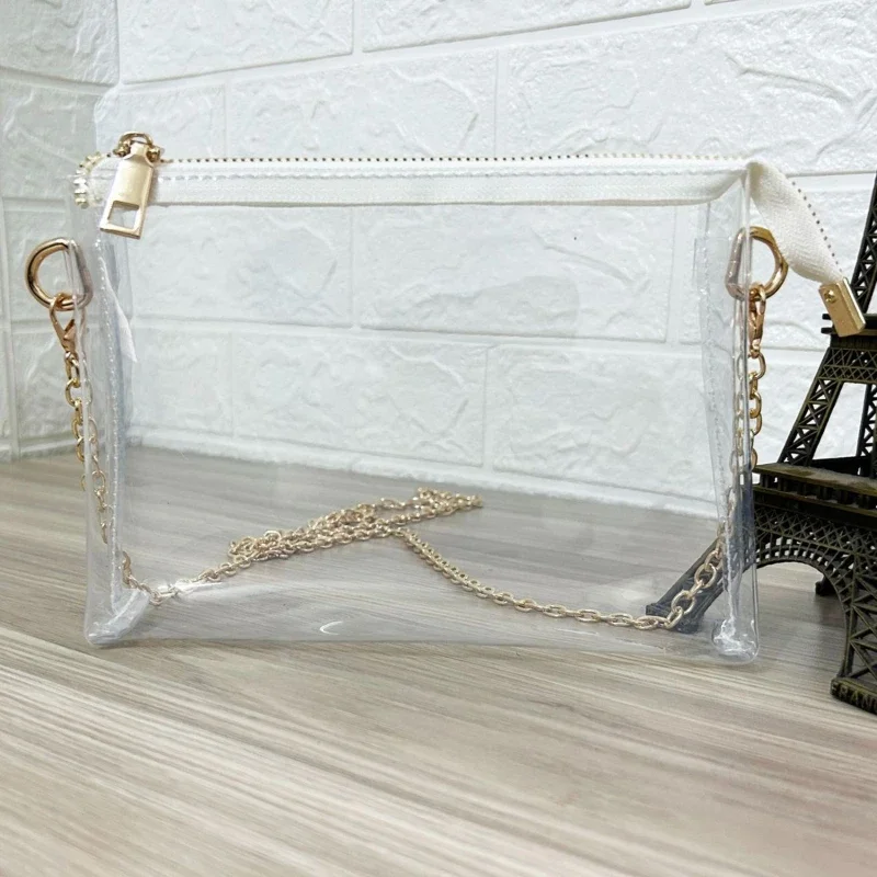 Clear Pack Bag Shoulder Bag Women Transparent Metal Chain Bag Wallet Gift Transparent Crossbody Bag Sports Concert Ball Party