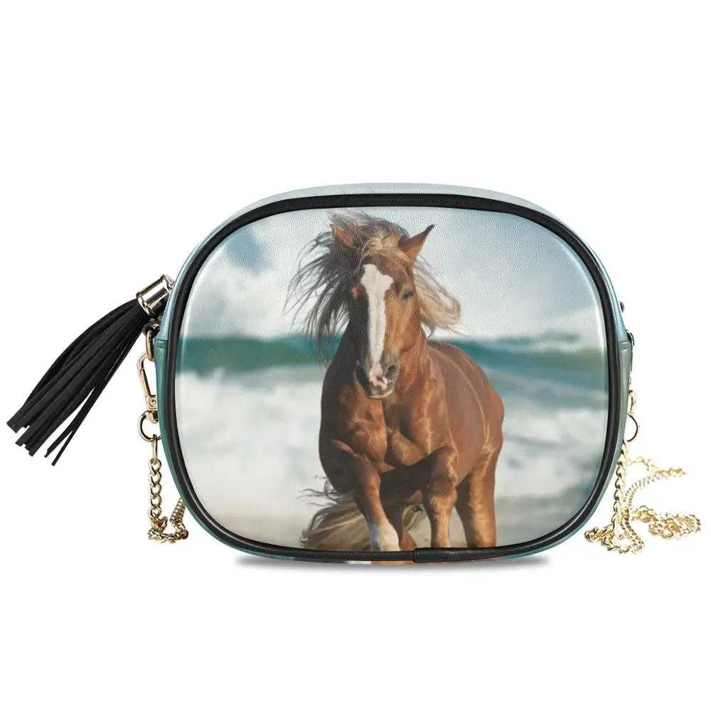 ALAZA New Hot chain crossbody bags Fashion Women Handbag PU Shoulder Horse Printed Messenger Bag Women Satchel Tote Purse Bags