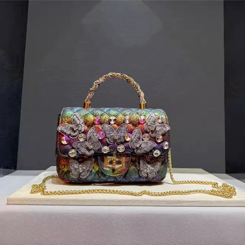 2025 Women's Luxury Designer Rhinestone Messenger Bag Retro Fashion Butterfly Diamond Handbags With Metal Chain Shoulder Bag