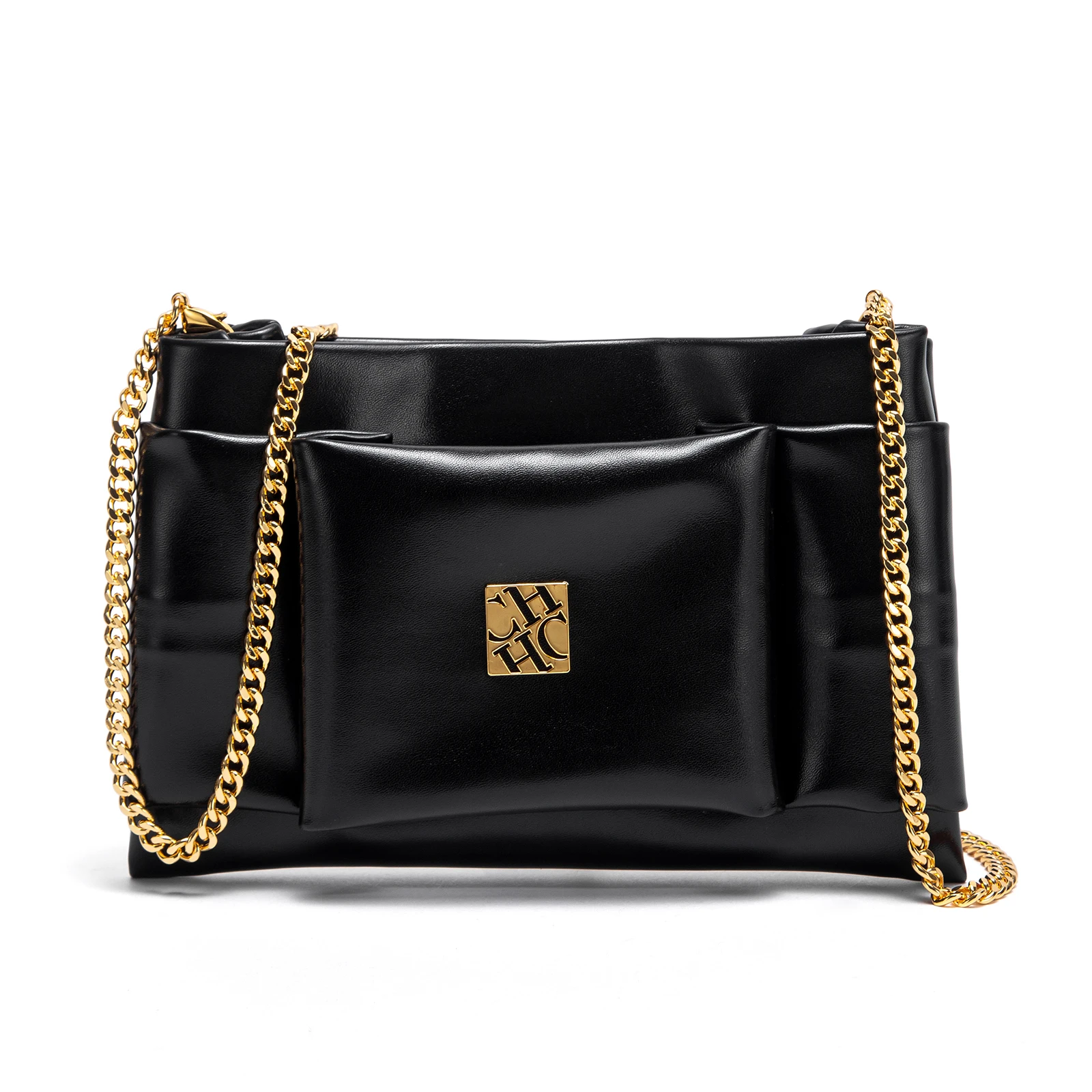 CHCH Women's Shoulder Bag New Simple Black Detachable Dual purpose Chain Bag Business Wallet