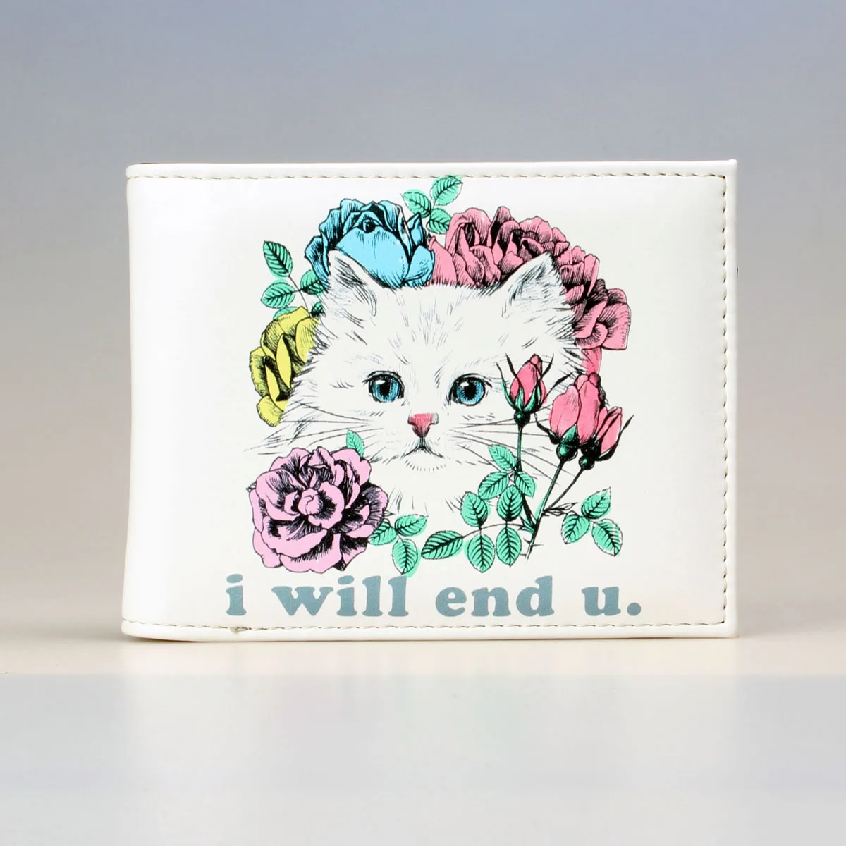 Kawaii Cartoon Cat Pattern Wallet, Bifold Clutch Coin Purse, Slim Credit Card Holder