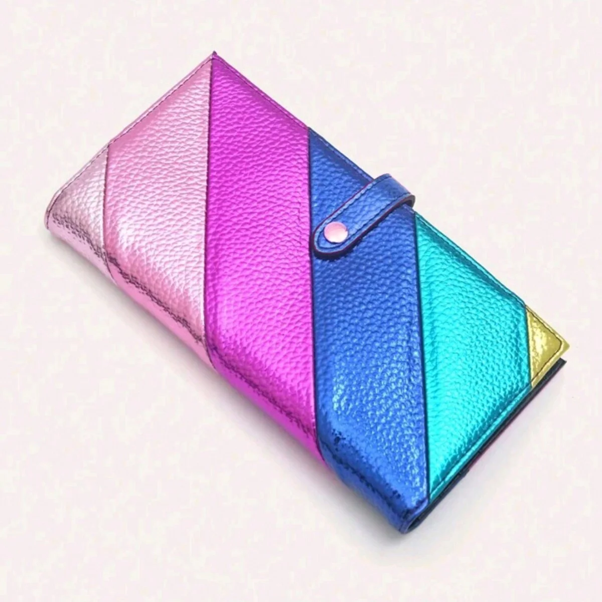 Women's Fashion Elegant PU Leather Long Wallet Colorful Stripe Stitching Zipper Pocket Card Holder, Bifold  Read more