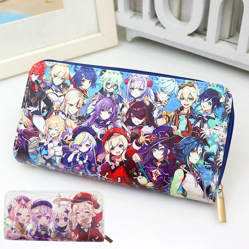 Anime Cartoon Genshin Impact PU Leather Multi-Layer Wallets Cosplay Long Wallet Coin Bag Zipper Purse Gift Reward