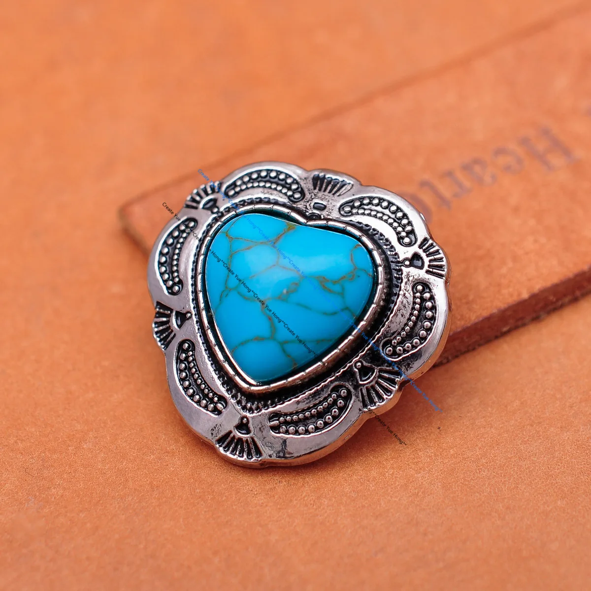30mm Silver Ethnic Tribal Traditional Flower Love Heart Turquoise Leathercraft Conchos For Belt Bag Wallet Screwback  Read more