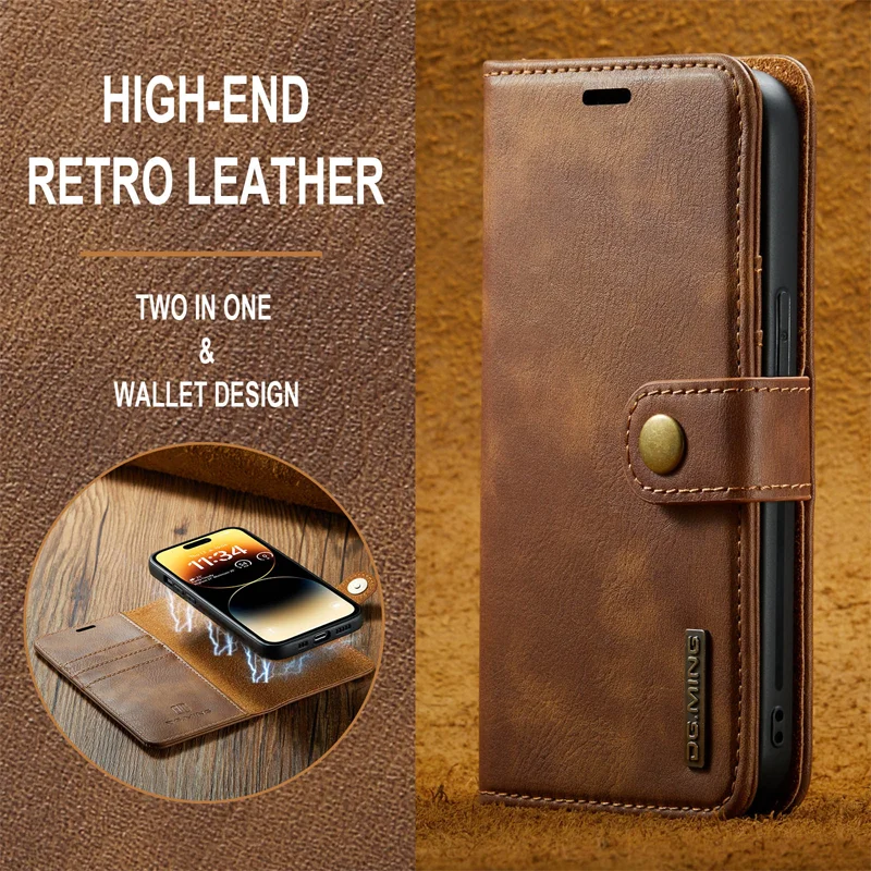 For iPhone 16 15 14Pro Max 13 12 11 Pro Max Plus XS X XR Deluxe removable magnetic wallet flip cover cell phone leather case
