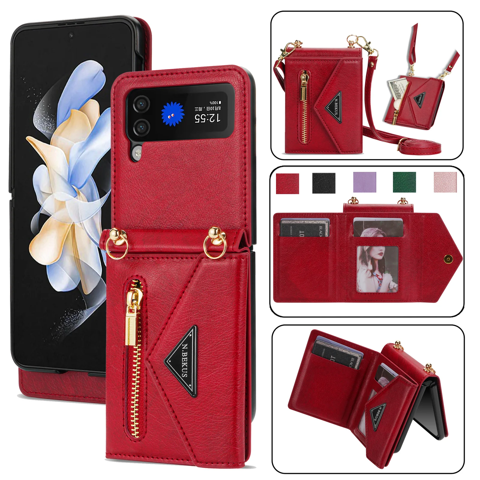Crossbody Leather Wallet Phone Case for Samsung Galaxy Z Flip 7 6 5 4 3 5G Flip7 Flip6 Purse Cards Holder Lanyard Strap Cover