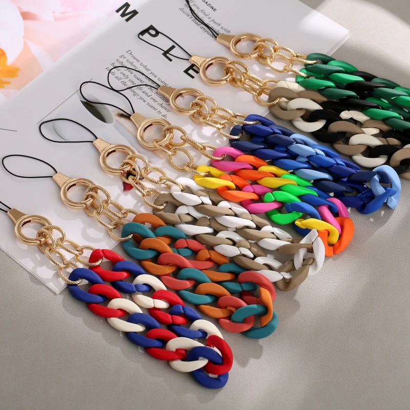 Fashion Colorful Metal Acrylic Beaded Mobile Phone Chain For Women Girls Anti Lost Telephone Lanyard Cellphone Strap Jewelry