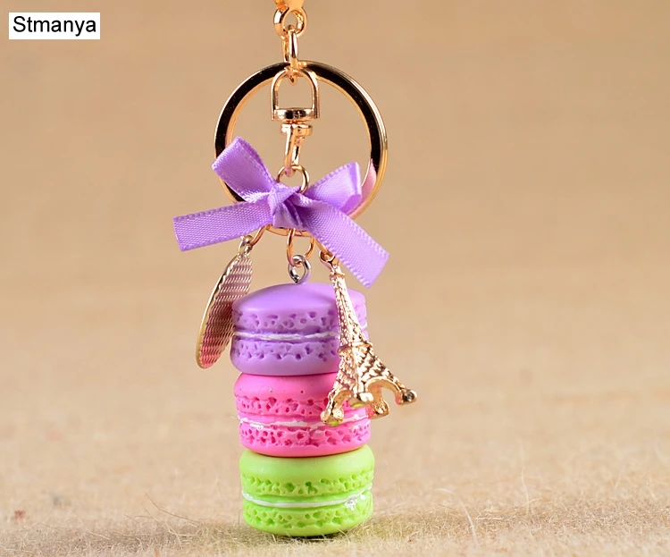 New Cake Key chain fashion car Key Ring Women bag charm accessories France Cake Macarons with Eiffel Tower Keychain gift Jewelry  Read more