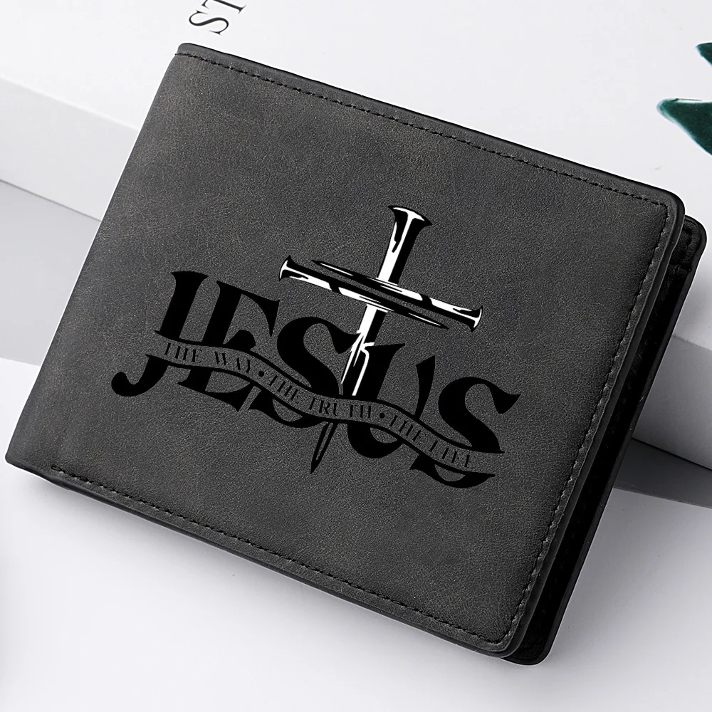Men's Short Wallet Business Retro JESUS Pattern Multi-Card Slot Zipper Coin Pocket High-Quality Men's Wallet