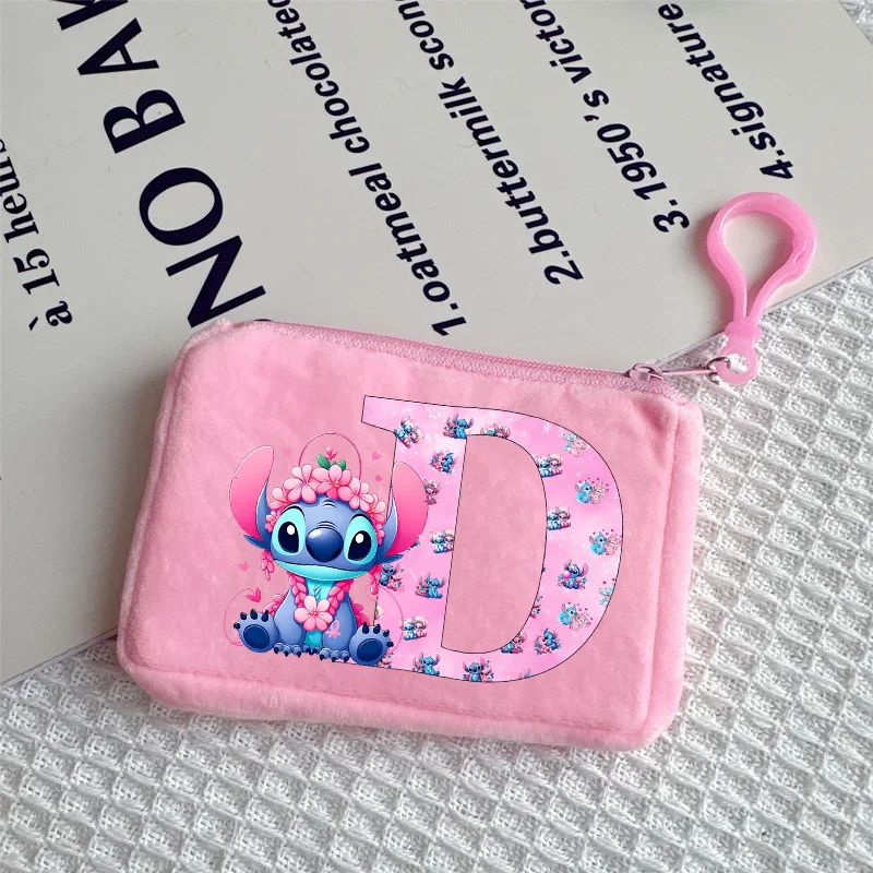 Stitch Disney Coin Purse Letter A-Z Girls Mini Short Wallet Keychain Zipper Purse ID Card Money Bag Small Makeup Bags Kids Gift