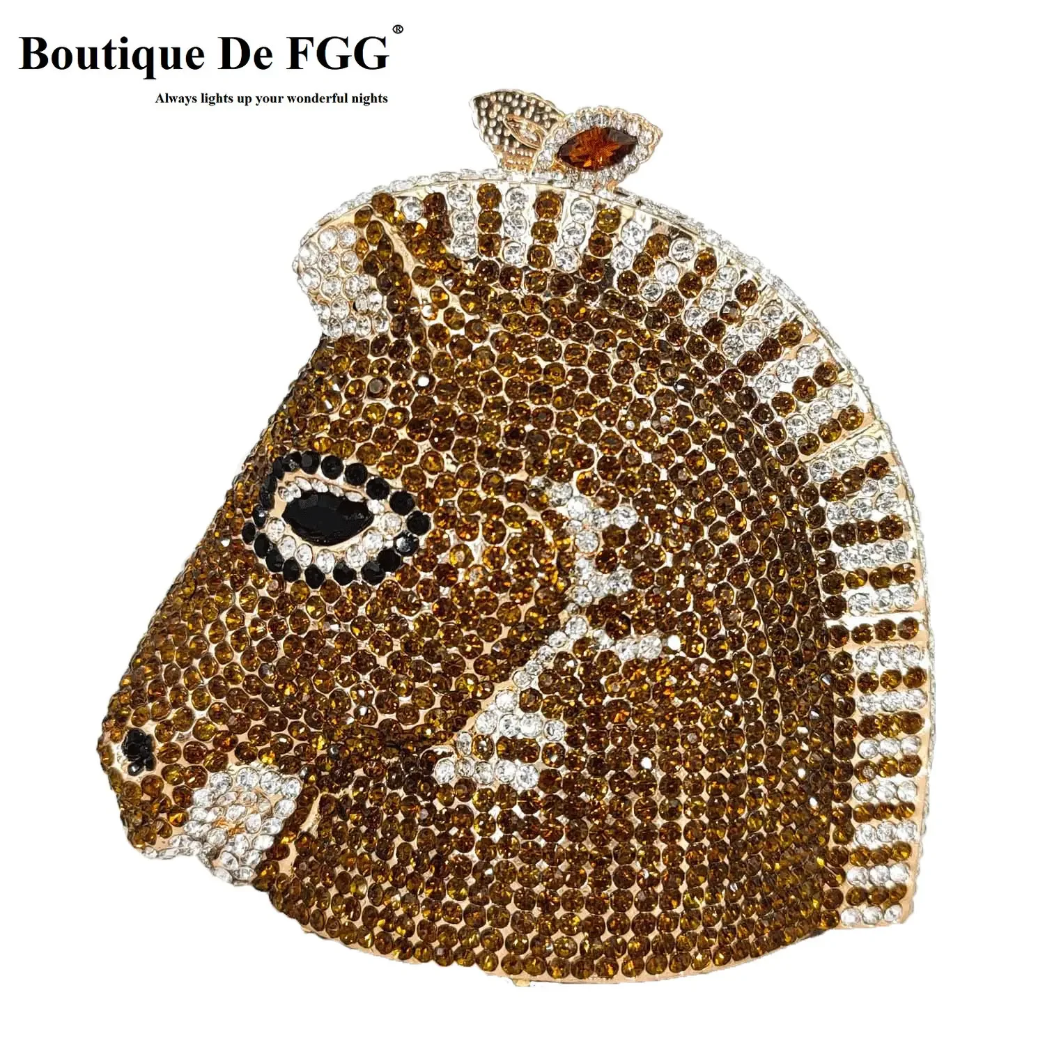 Boutique De FGG (in stock) Horse Head Women Mini Crystal Evening Purses and Handbags Wedding Party Minaudiere Clutch Bag