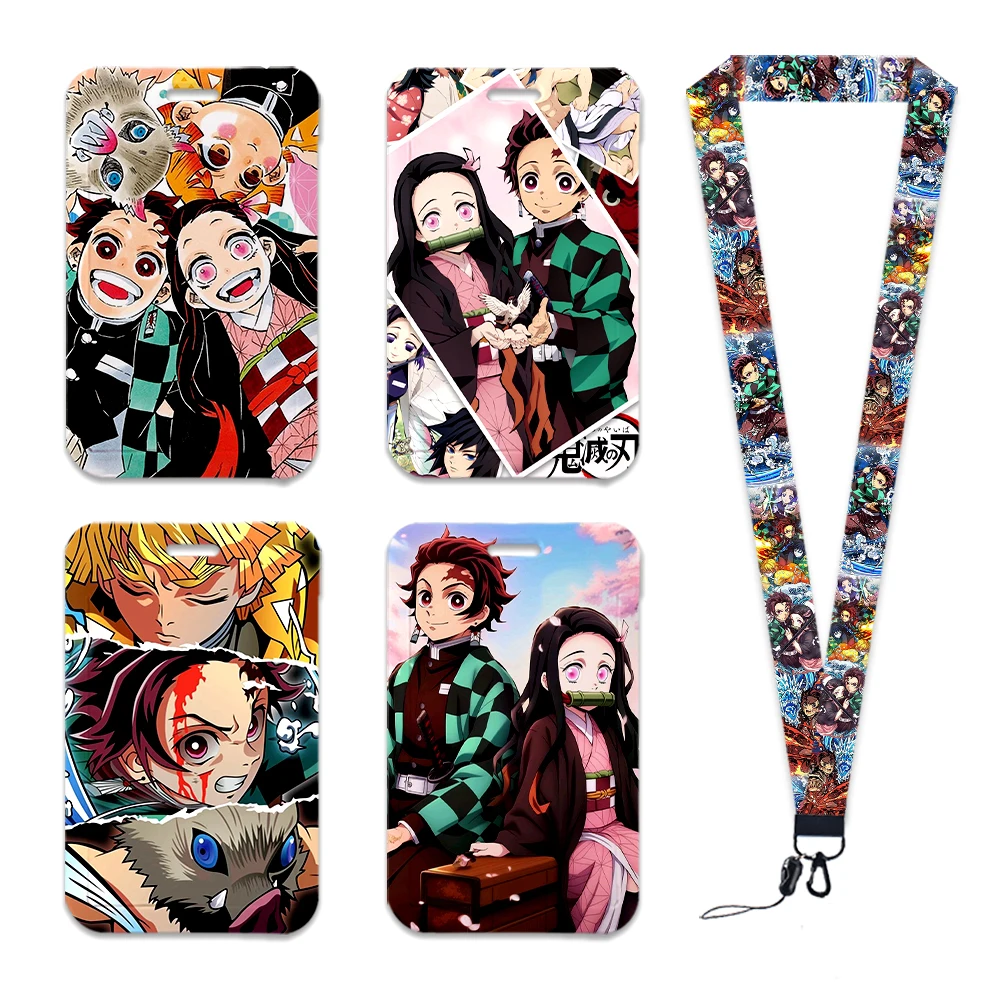 Japanese Anime Kimetsu No Yaiba Lanyard For Keys Chain ID Credit Card Cover Bus Card Holder Charm Badge Holder Personalized Gift