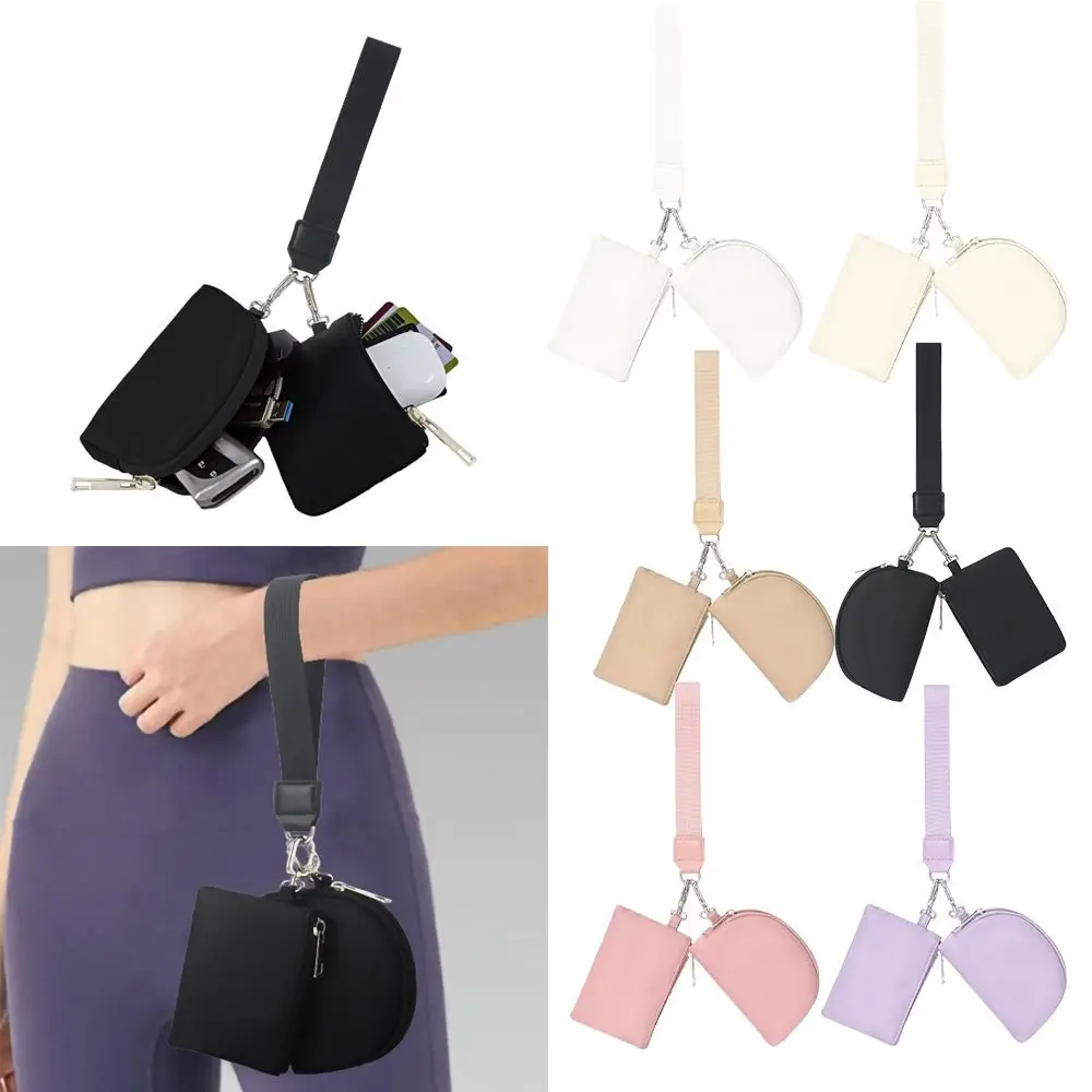 Cute Zipper Around Wristlet Wallet Detachable Small Dual Pouch Wristlet Keychain Purse Mini Coin Pouch for Women Girls
