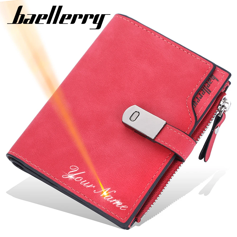 New Women Short Wallets Magnetic Buckle Free Name Engraving Top Quality Card Holder Female Purse Zipper Wallet For Girl