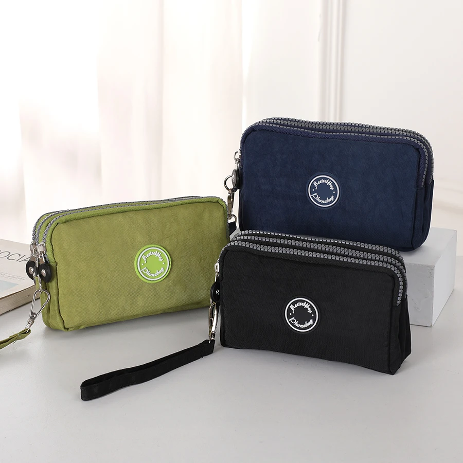 Portable Handheld Cell Phone Wallet, Triple Zipper Ladies Clutch Bag, Large Capacity Handheld Coin Purse