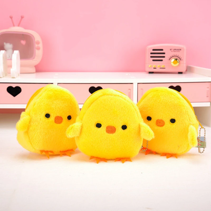 Cute Plush Chick Coin Purse Lipstick Headphone Bag Yellow Chicken Pouch Coin Purses Pink Pig Small Zipper Bags Women's Wallet