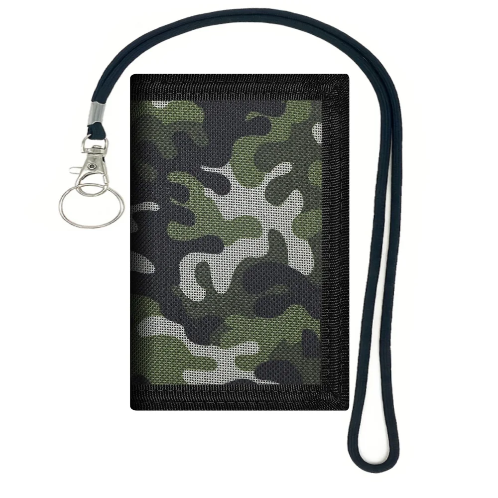 Kids Wallet with Lanyardfor Boys, RFID Trifold Outdoor Sports Wallet for Kids Festivals gifts, Birthday Gifts Wallet - Camo Green