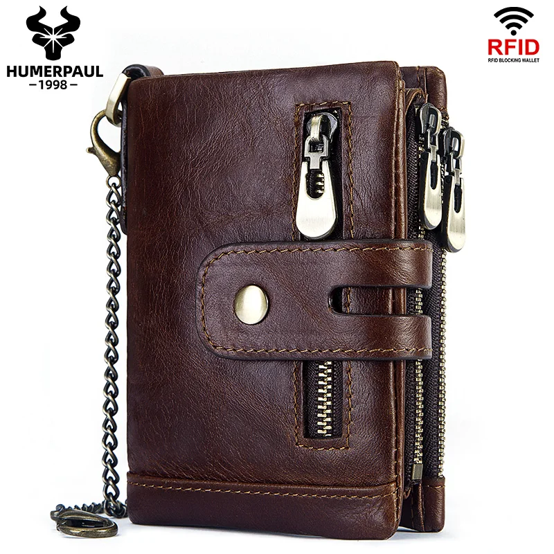 HUMERPAUL Wallet for Men RFID Genuine Leather ID Credit Card Holder with Anti-theft Iron Chain Brand Design PORTFOLIO Portomonee