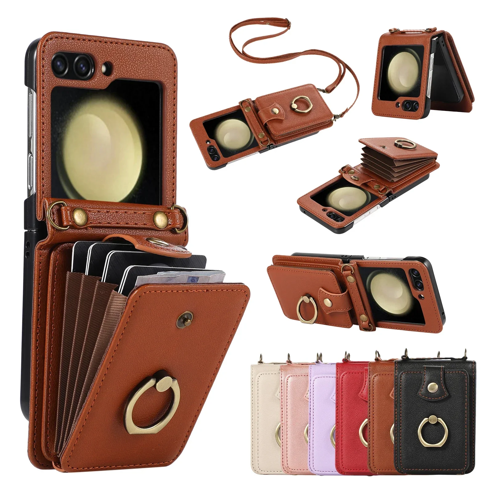 Crossbody Leather Cards Solt Wallet Bag Case For Samsung Galaxy Z Flip 7 6 5 4 5G Flip5 Finger Ring Holder Lanyard Pocket Cover