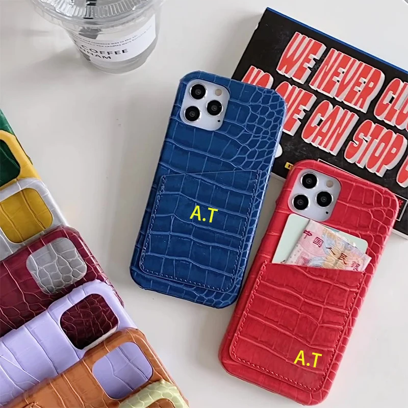 Customized Leather Phone Case with Card Holder Initials Name Letter Crocodile Pattern iPhone17 16 11 12 13 14 15ProMax 16Plus