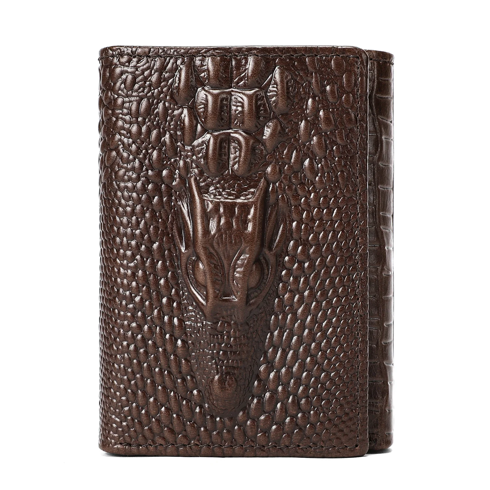 Genuine Leather Crocodile Pattern Short Wallet Multi-functional Card Slots ID Card Holder Premium Men's Wallet