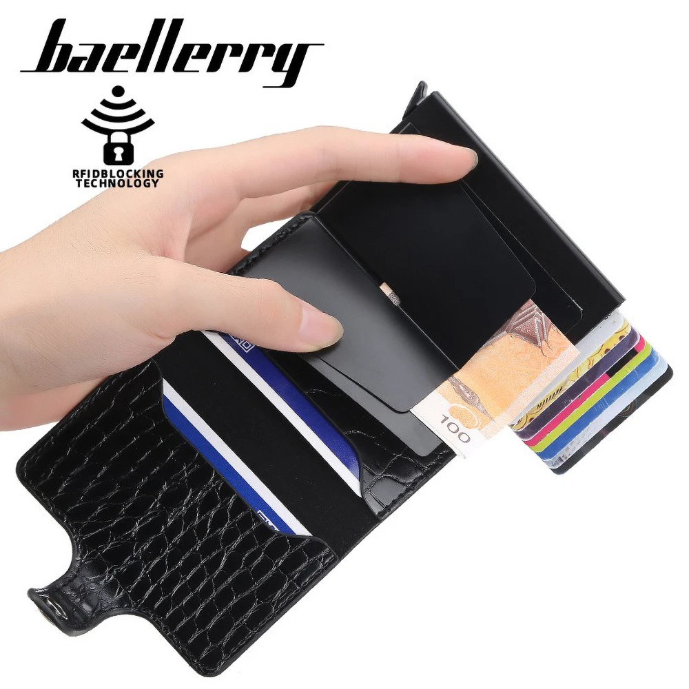 Luxury Men's Short Wallet - Baellerry Crocodile Texture Slot Metal Card Holder, Anti-Demagnetization Slide Push  Read more