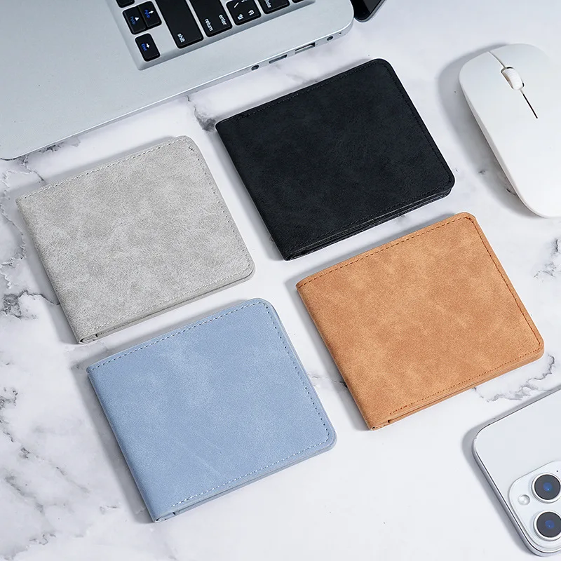 Ultra-light and thin men's simple wallet card bag matte soft leather short multi-card position suede folding integrated  Read more