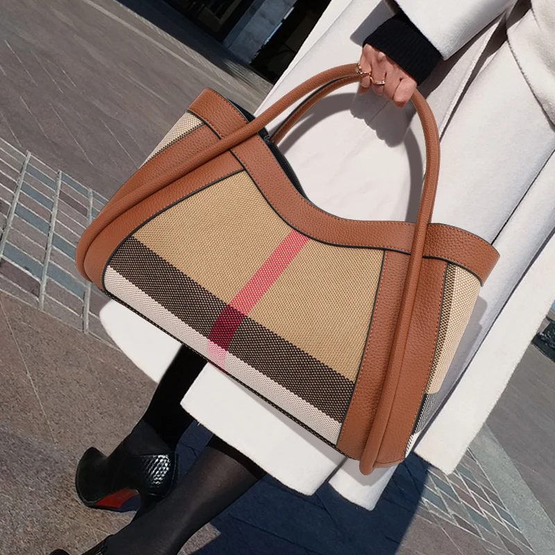 Retro Checkered Women's Handbag Canvas With Cowhide Purses And Handbags Child Bag Crossbody Bags For Women Luxury Designer  Read more