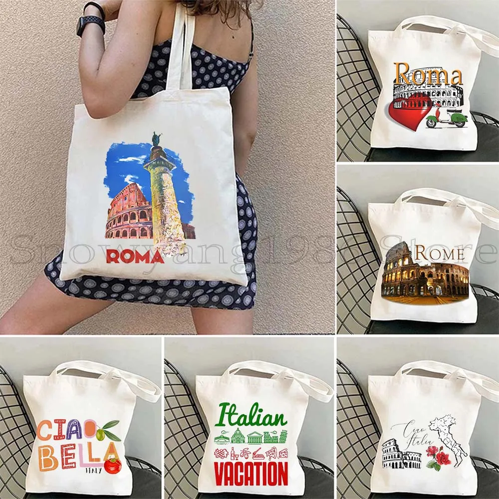Funny Ciao Bella Saying Italy Flag Rome Colosseum Firenze Florence Panorama Italian Canvas Tote Bag Shopper Girl Casual Handbag