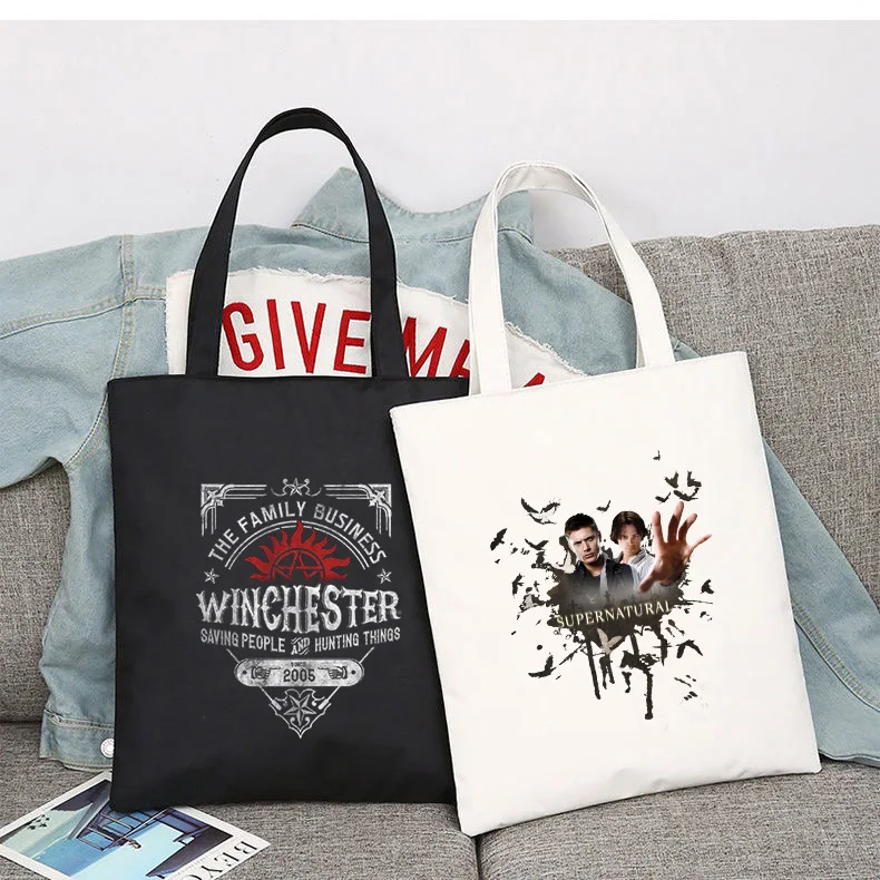 Supernatural Winchester Bros Sam Dean Shopping Bag Handbag Foldable Reusable Cloth Shopper Harajuku Bag Student Canvas Tote Bag