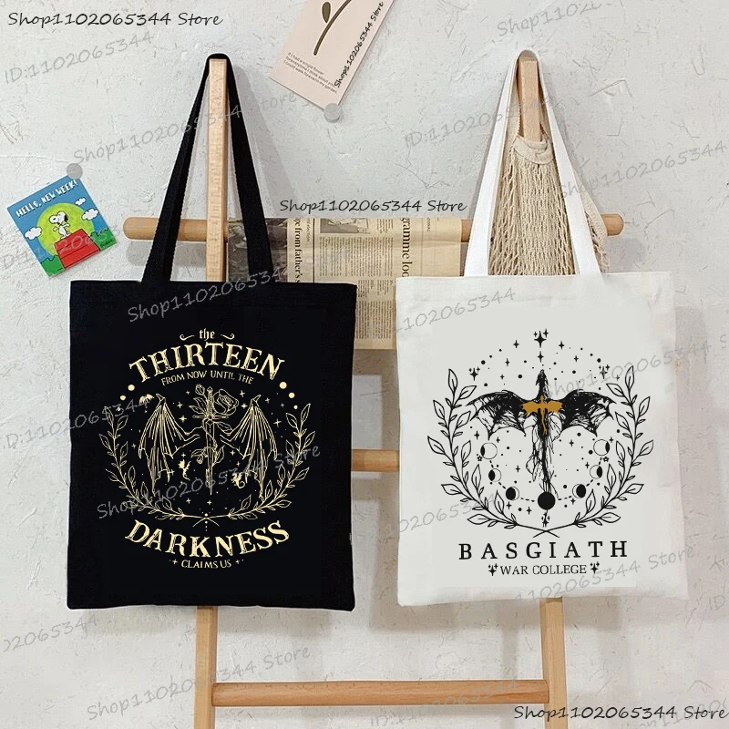 Fourth Wing Handbags Women Basgiath War College Pattern Canvas Tote Bags Dragon Rider Street Shopping Bags Reader Shoulder Bag