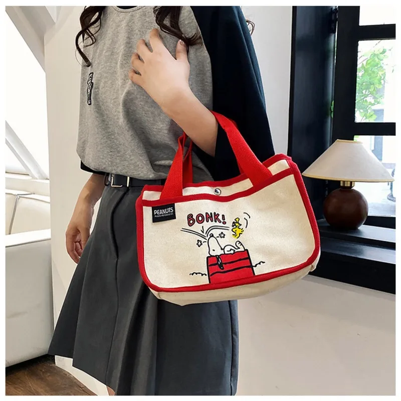 MINISO Snoopy Canvas Multifunctional Handbag Children's Cartoon Cute Handbag Desktop Storage Bag Animation Kawaii Shopping Bag  Read more