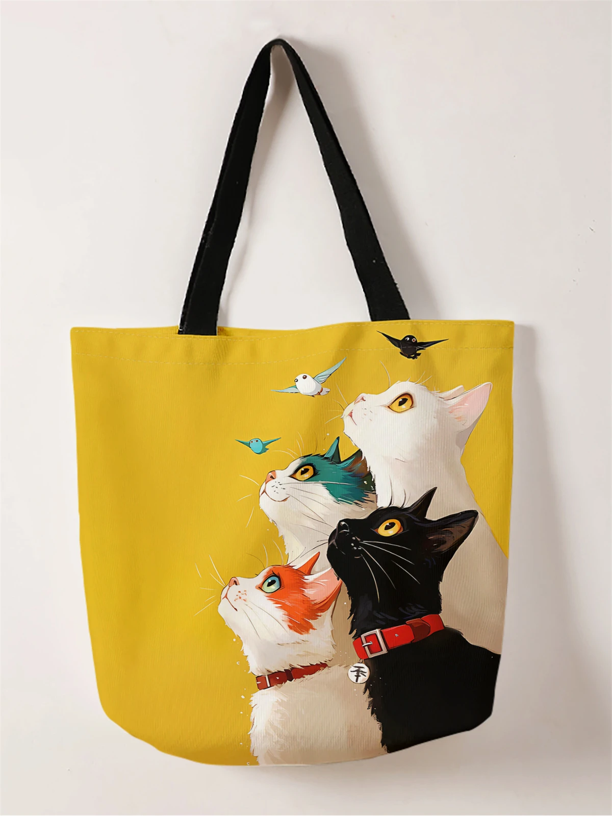 1pc, stacked cat handbag, reusable fashionable handbag, multifunctional handbag, printed canvas shopping bag