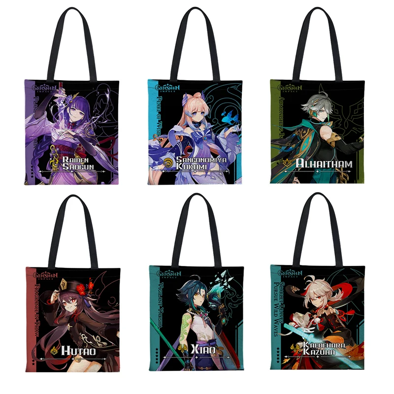 Cartoon Yae Miko Raiden Shogun Hu Tao Xiao Shoulder Bag Genshin Impact Canvas Shopping Tote Bag Trendy Fanshion Collection