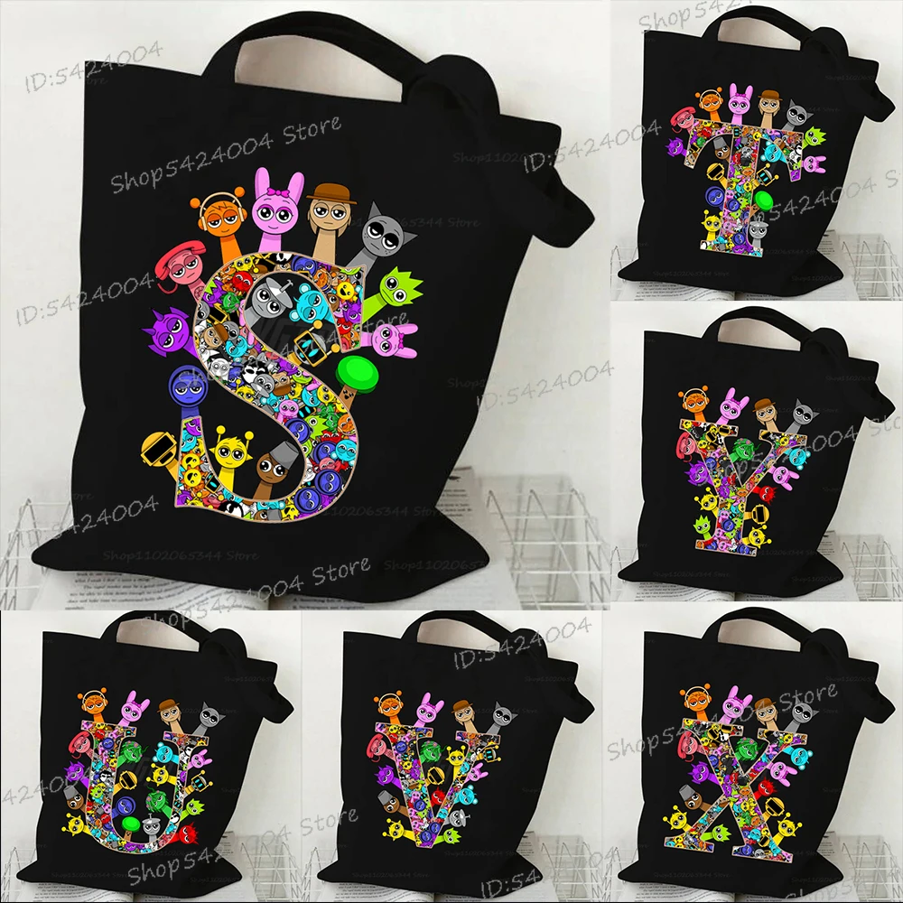 New Sprunki Letter A-Z Teen Canvas Tote Bags Cartoon Game Figure Printed Shoulder Bag Casual Men Women Funny Sprunki Handbag