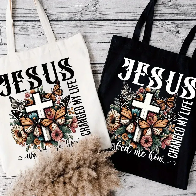 Christian Jesus Tote Bag with Verse - Reusable Canvas Grocery Bag Durable Church Handbag Religious Gifts