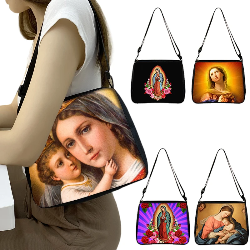 3D Print Virgin Mary Religion Shoulder Bags Our Lady of Guadalupe Crossbody Bag Messenger Bags Women Canvas for Travel Gift