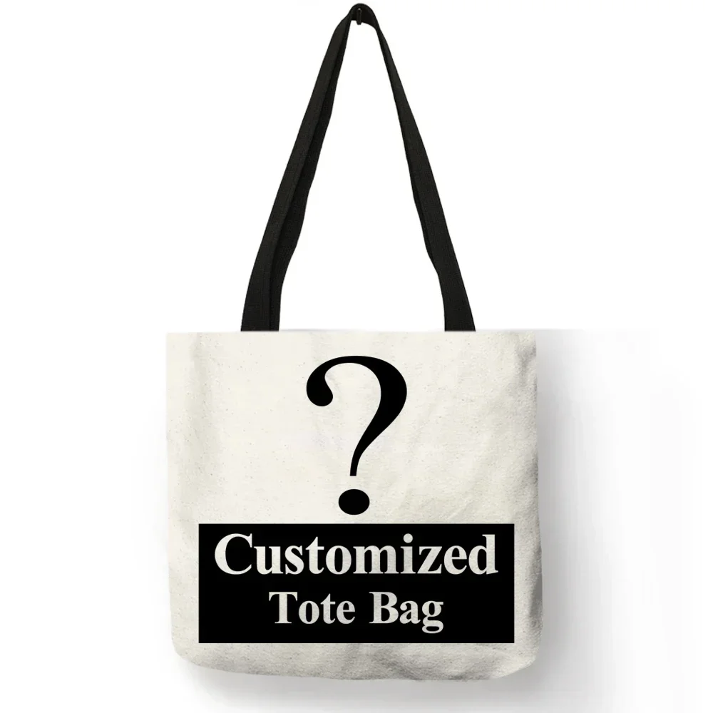 Personal Customize Women Tote Bag Linen Canvas Bag With Print Logo Custom Your Pictures Shopping Bags DIY Business Gift