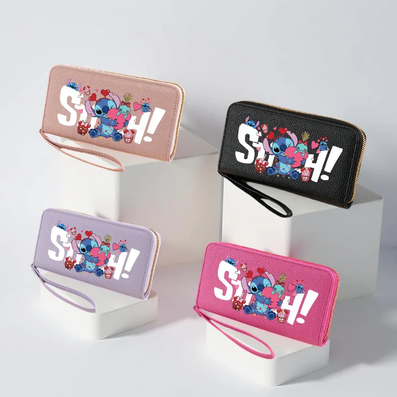 1PC Stitch Cartoon Long Wallet with Wrist Strap, PU Zipper Purse, Cute Travel Wallet Gift for Halloween Thanksgiving Christmas