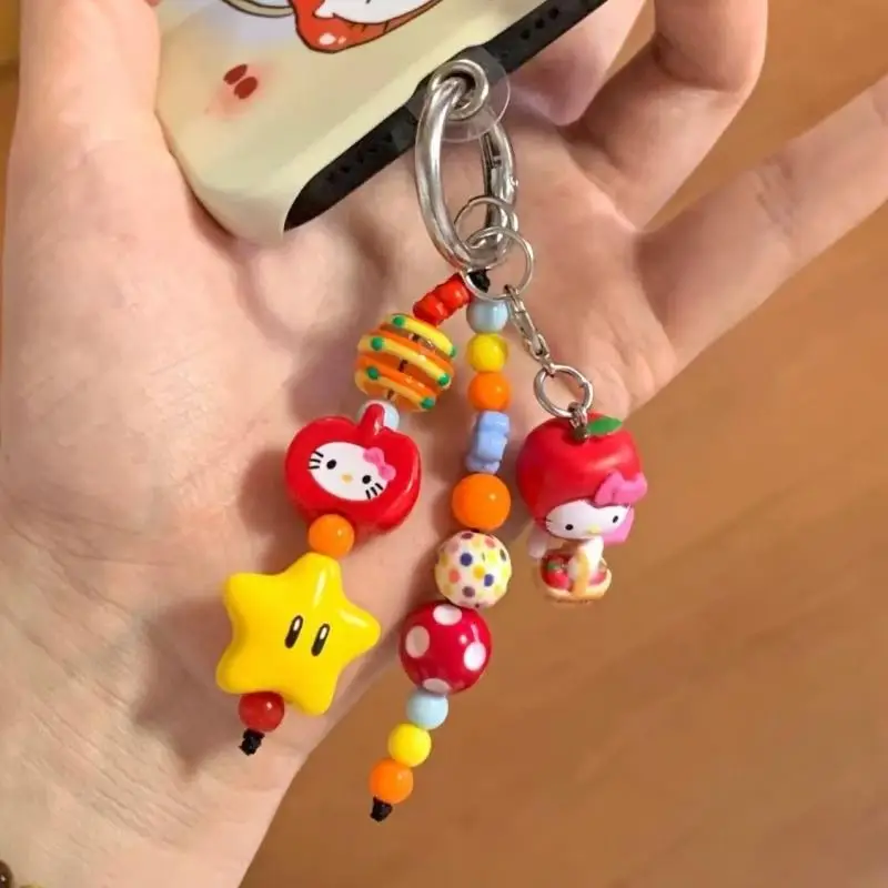 Cute Denim Mushroom Kitten Women's Bag Pendant Sweet Cartoon KT Beaded Mobile Phone Chain Earphone Pendant Bag Decoration Gifts