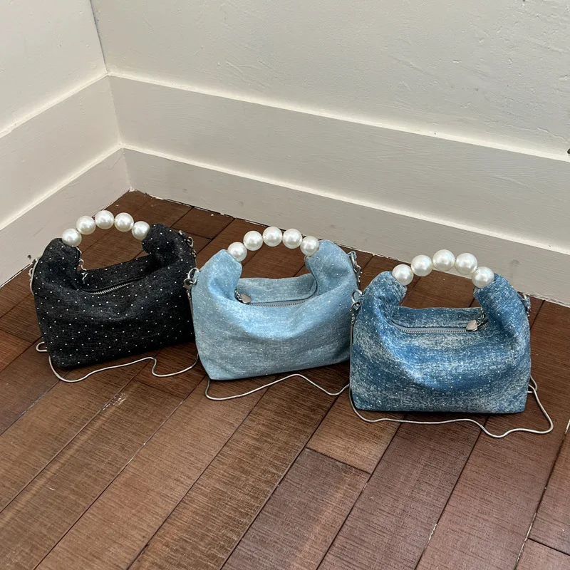 Elegant Beaded Diamond Party Handbag Women Vintage Chain Single Shoulder Crossbody Bag Temperament Versatile Denim Clutch 2026